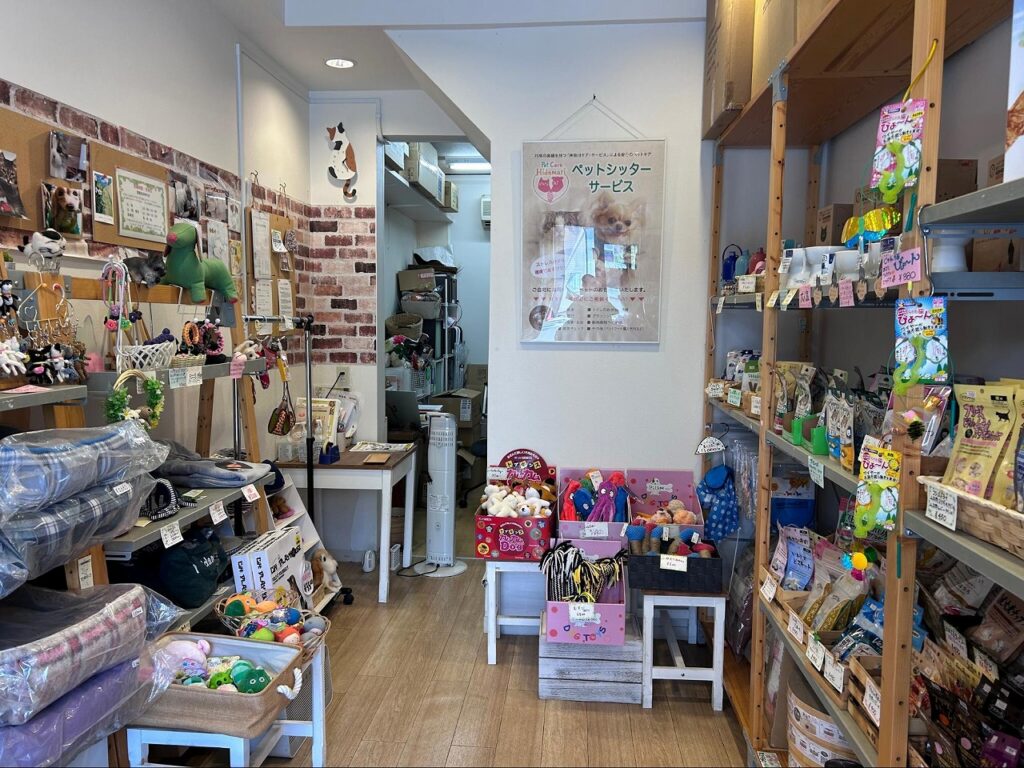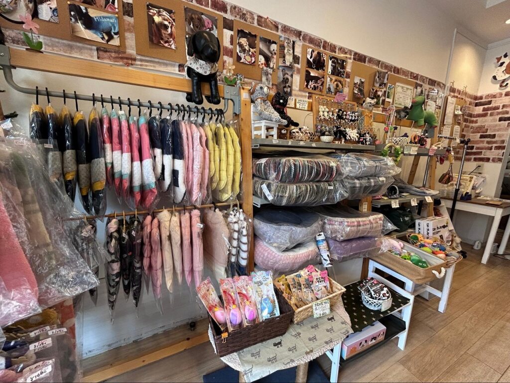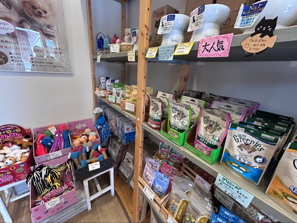 店内には、かわいらしいおもちゃやペット雑貨、おやつなどが並び、見ているだけでもほっこり。