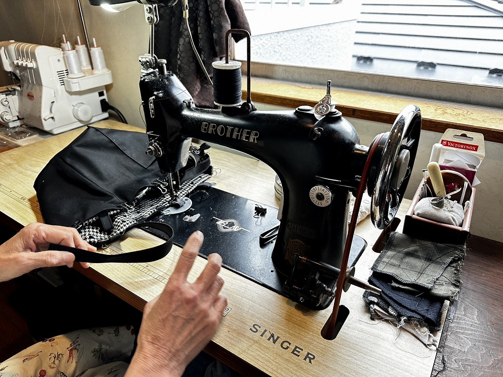 昔ながらのミシンやロックミシン、アイロン台が並ぶ空間は、